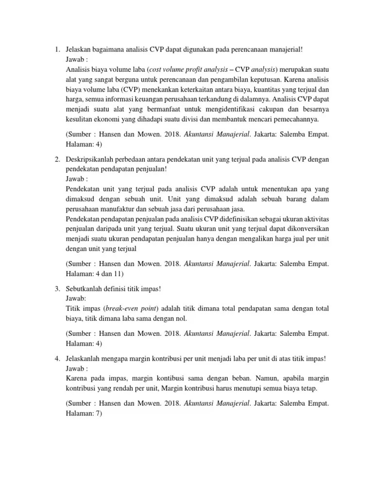 Jika jumlah unit barang yang diproduksi meningkat, maka biaya variabel juga akan meningkat sebesar perubahan jumlah unit dikalikan dengan biaya …